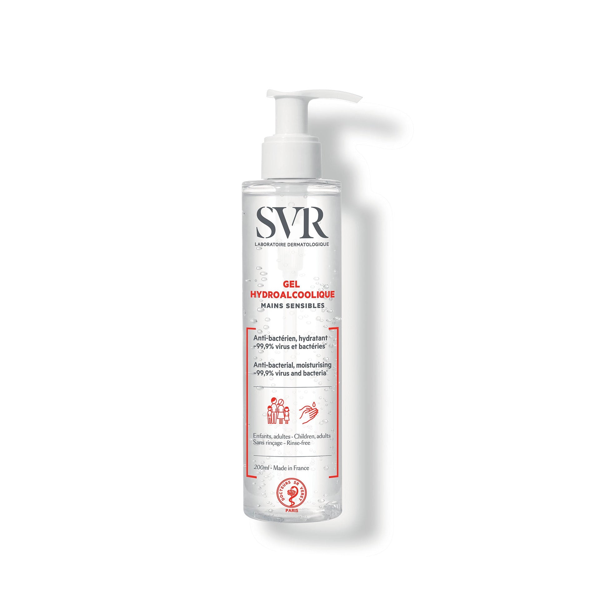 Nous nous engageons dans cette lutte avec notre gel hydroalcoolique dermatologique spécifique pour les mains les plus sensibles. Testé sous contrôle dermatologique, vous pourrez l’utiliser plusieurs fois par jour, sans aucune crainte de desséchement cutané.  Il élimine 99.9% des virus et bactéries en 30 secondes(1) . Enrichi d’une association synergique de glycérine végétale et d’un complexe de sucres breveté, son action hydratante est véritablement boostée pour des mains confortables et hydratées même 3h après l’utilisation. Et parce que la sensorialité compte aussi beaucoup, nous avons mis un point d’honneur à faire une texture non grasse, non collante délicatement parfumée que vous aurez envie d’utiliser et réutiliser au cours de la journée.