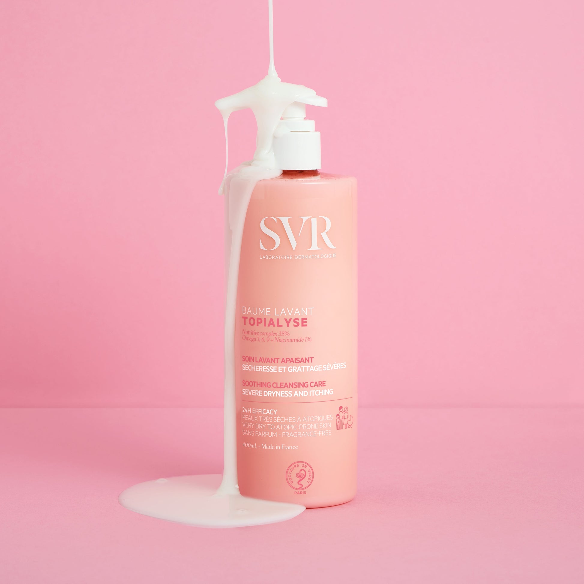 TOPIALYSE BAUME LAVANT est un soin lavant sans parfum sans sulfate pour les peaux très sèches à tendance atopique.